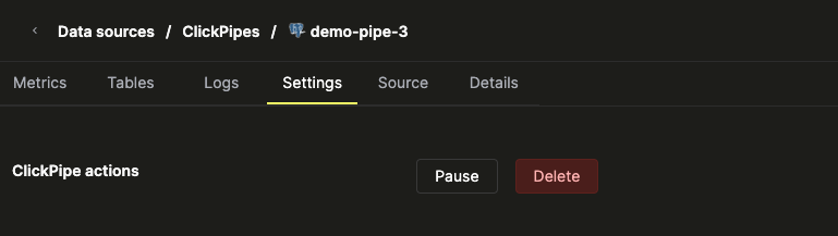 - На вкладке Data Sources выберите MongoDB ClickPipe, который вы хотите приостановить.