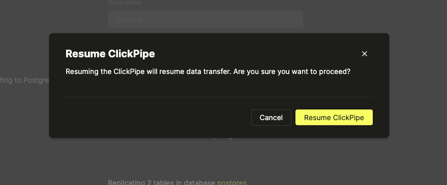 Существуют сценарии, когда полезно приостановить MongoDB ClickPipe. Например, вам может понадобиться проанализировать имеющиеся данные в неизменном виде. Или вы можете выполнять обновления MongoDB. Ниже описано, как можно приостановить и возобновить работу MongoDB ClickPipe.